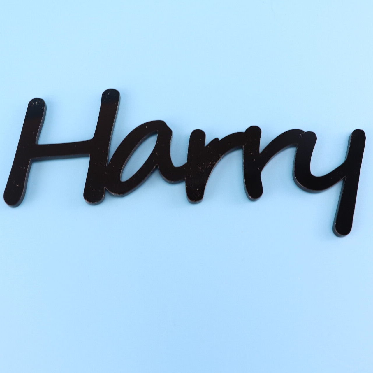 ✔️ Personalized Name Charm – sleek, modern script cut from acrylic for a stylish custom touch.