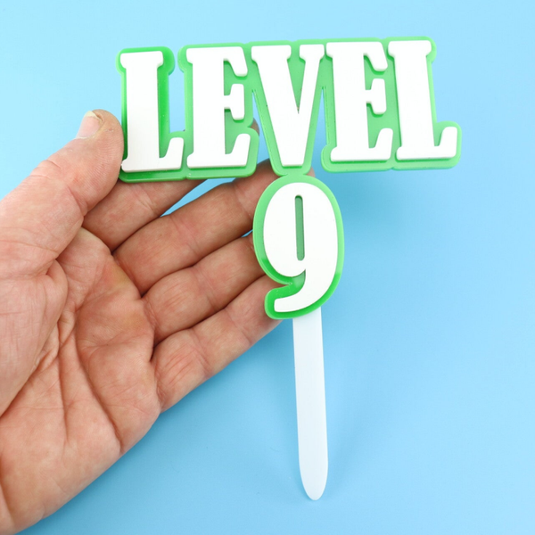 ✔️ "LEVEL [Age]" Topper – customizable with the birthday age for the ultimate gamer milestone. With or without prong