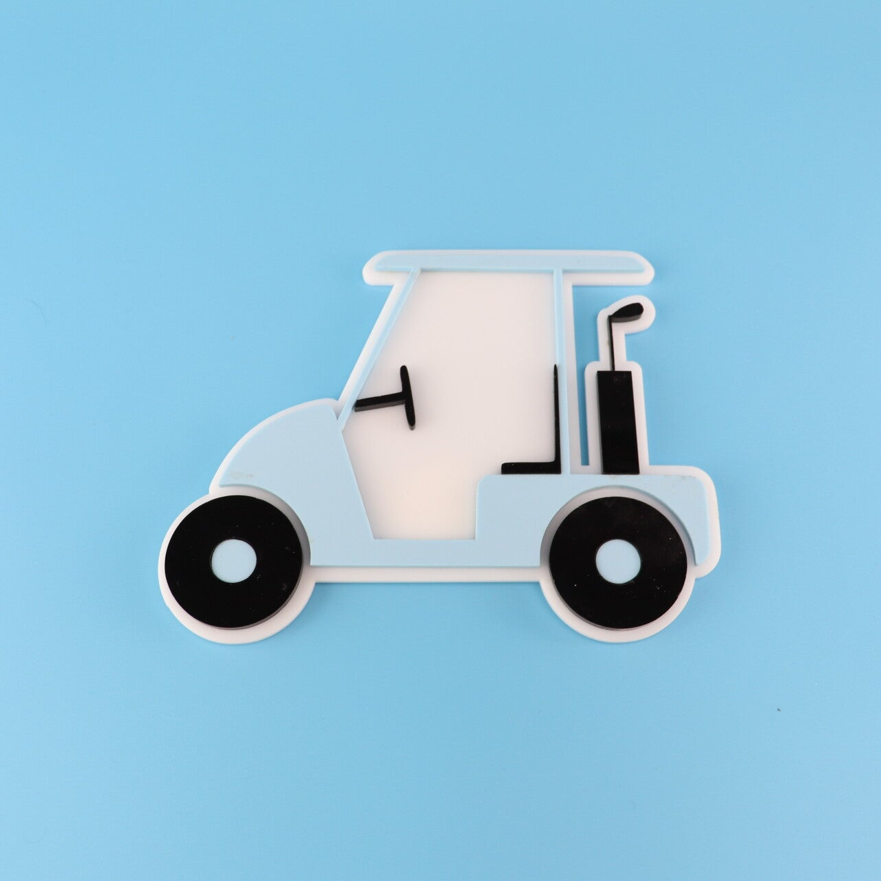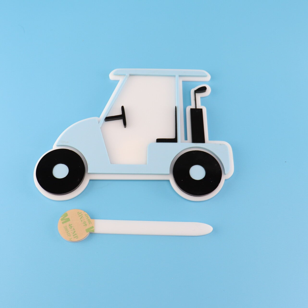 Perfect as a keepsake charm or a standout cake decoration, this acrylic golf cart is both stylish and memorable.