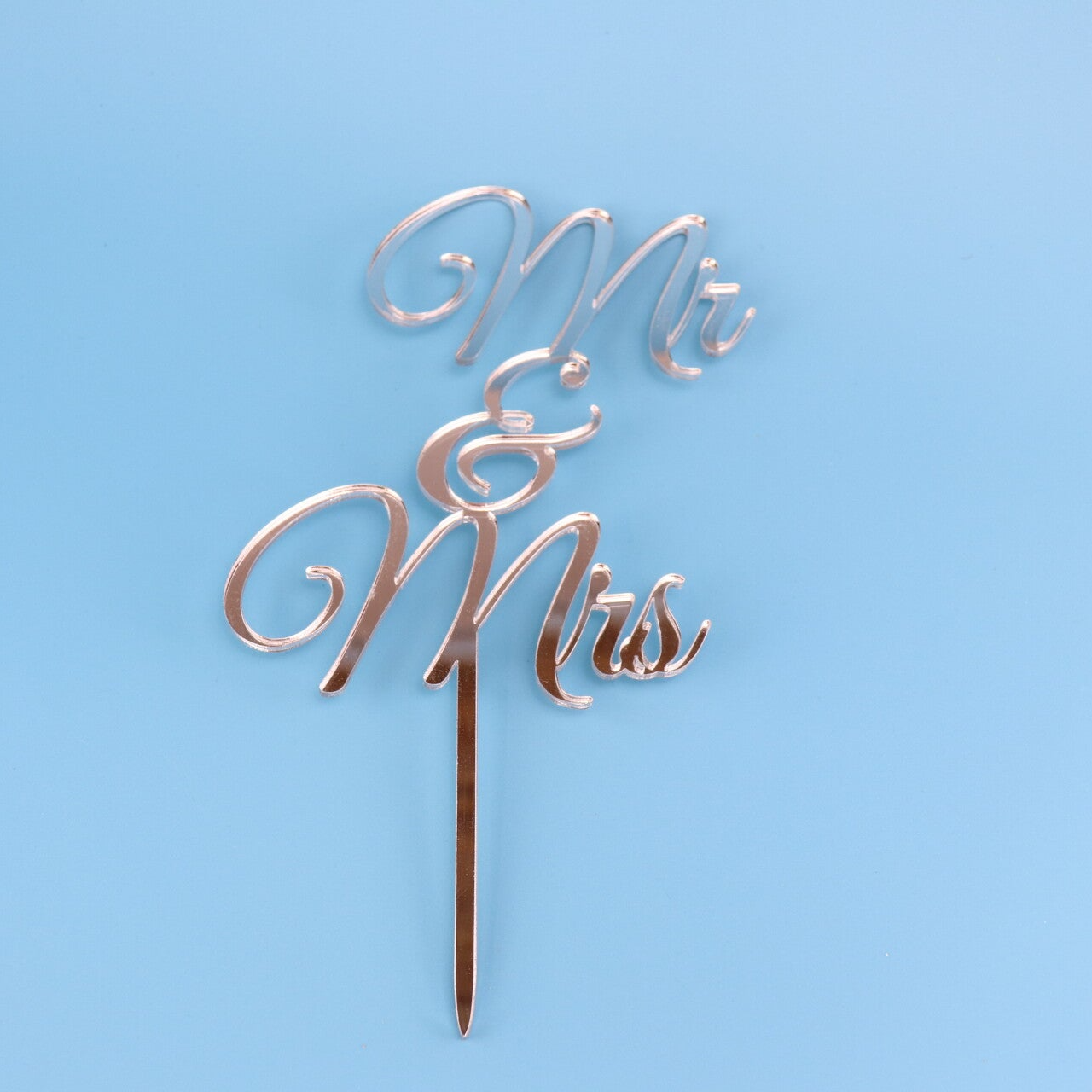 Featuring a flowing “Mr & Mrs” script, this cake topper combines classic typography with a contemporary silhouette. The smooth curves and polished finish create a sophisticated look that suits a wide range of wedding themes, from minimalist and modern to classic, rustic, or pastel-styled celebrations.