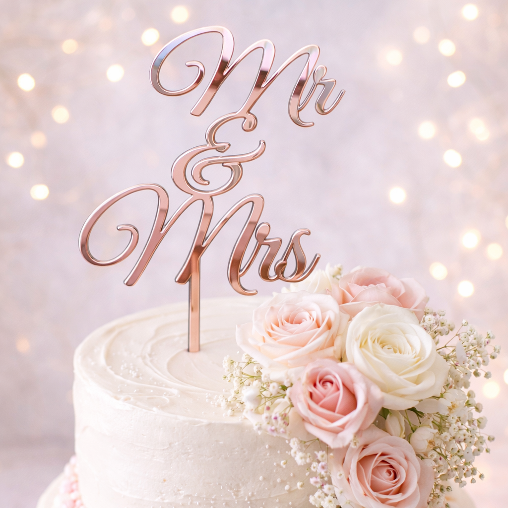 Whether you’re planning an intimate ceremony or a grand celebration, this Mr & Mrs Acrylic Cake Topper adds a refined, romantic finishing touch that photographs beautifully and leaves a lasting impression.