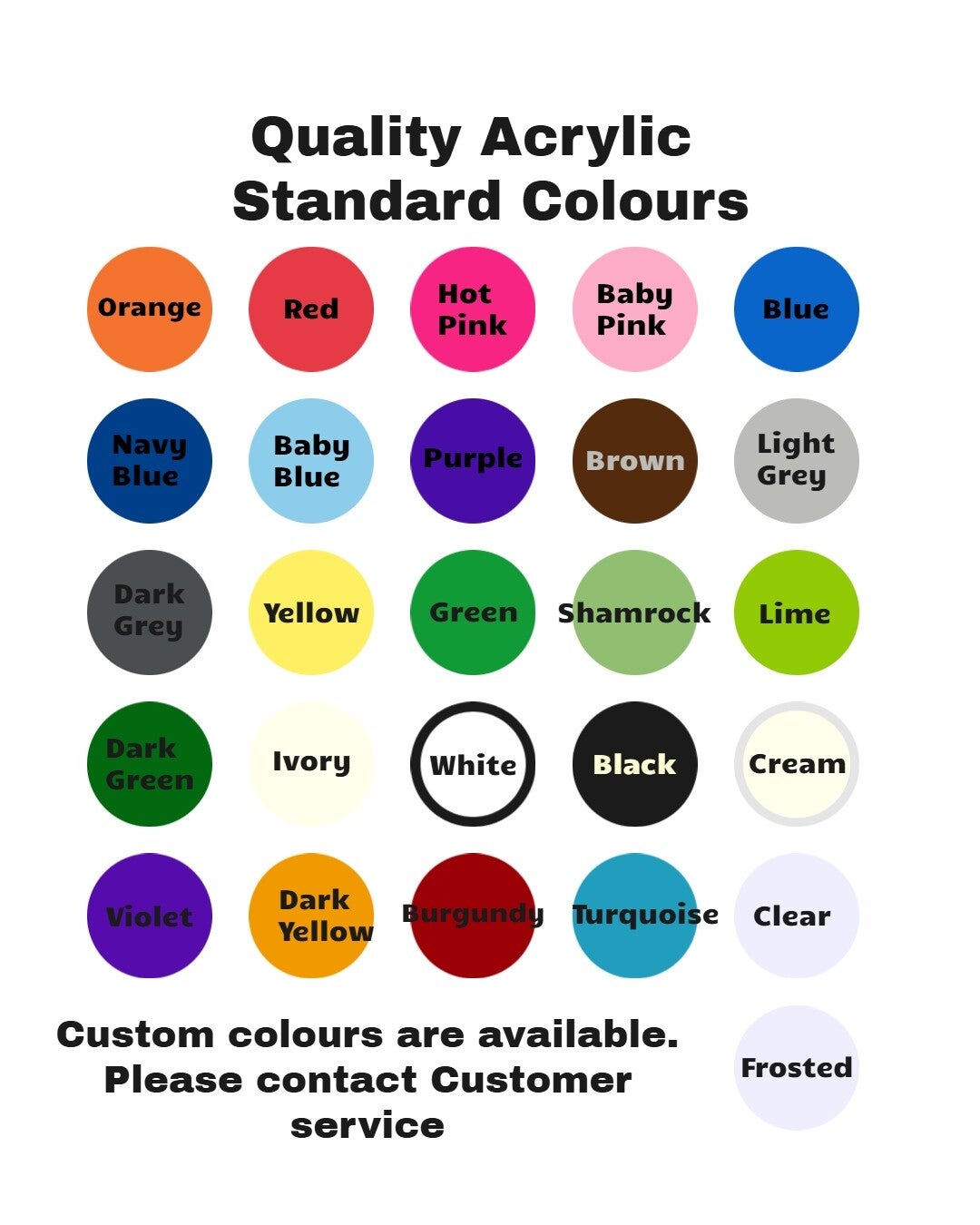 Material: Standard acrylic, pastel acrylic, or mirrored acrylic