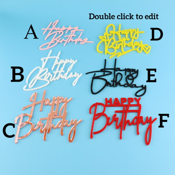 Happy Birthday Cake Charm – 6 Luxury Acrylic Cake Topper Desaigns