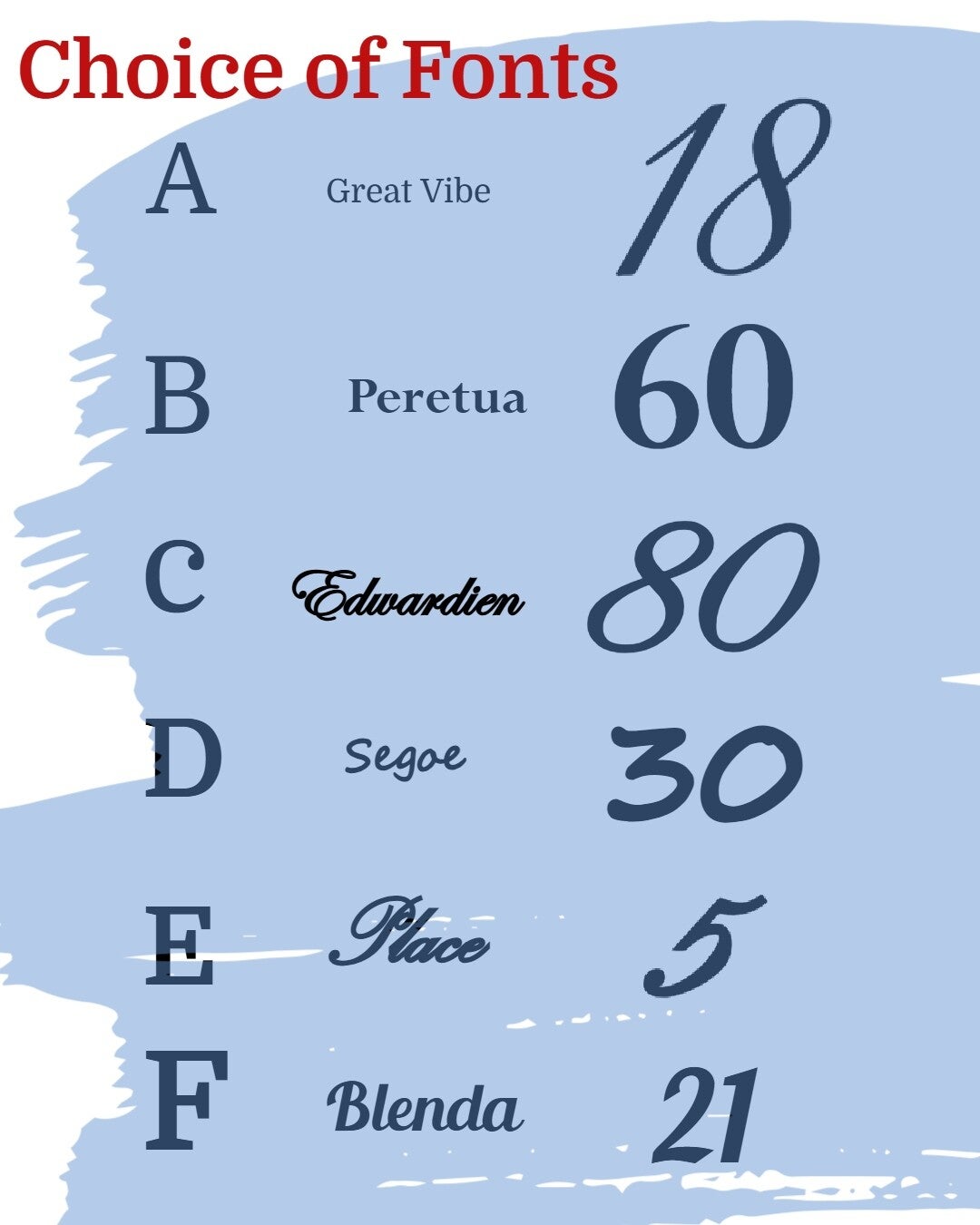 Choose from a selection of different fonts to suit your theme, whether you’re after something fun, modern, or elegant.