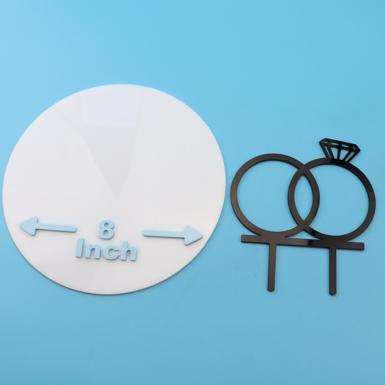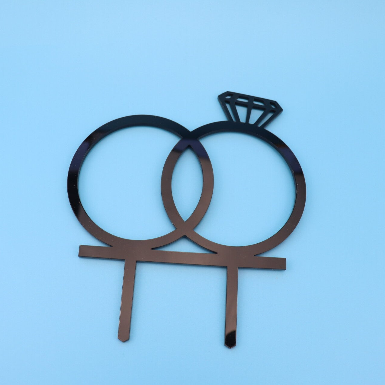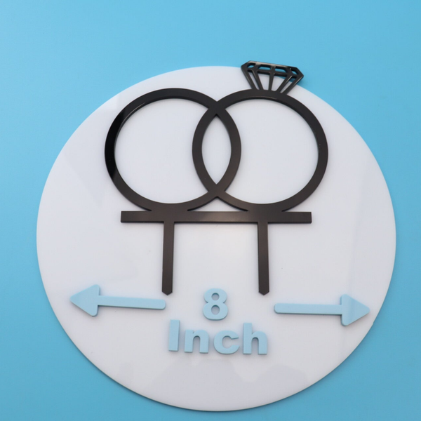 This striking topper features two interlocking rings, with one finished with a diamond detail, symbolising commitment and unity. Expertly crafted from high-quality acrylic, the clean lines and refined silhouette create a truly impressive statement on any cake.