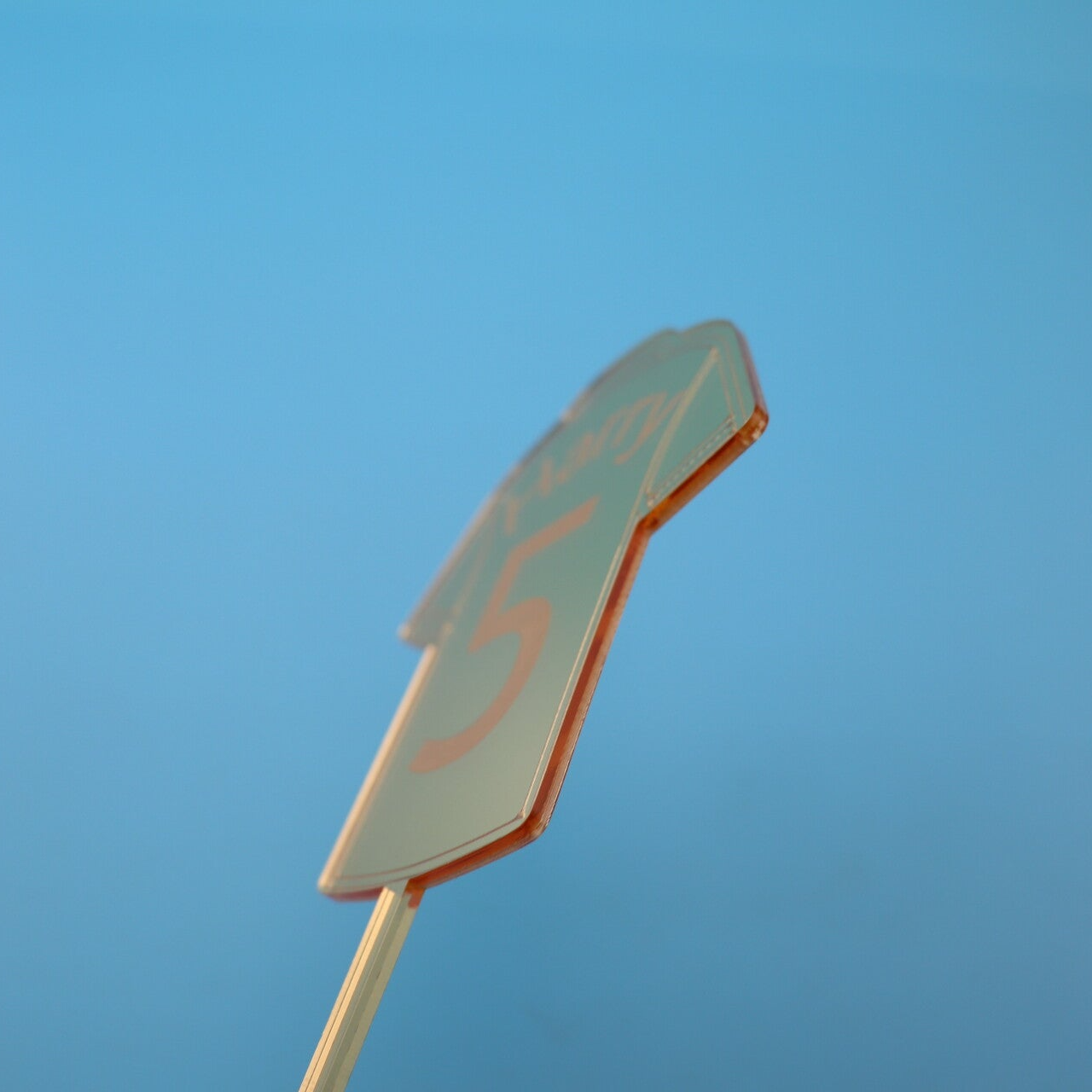 Transform any celebration into a sports masterpiece with this stunning personalised football shirt cake topper. Crafted from premium mirrored acrylic for a sleek, high-gloss finish, this topper adds a touch of elegance and excitement to birthday cakes and sports-themed events.
