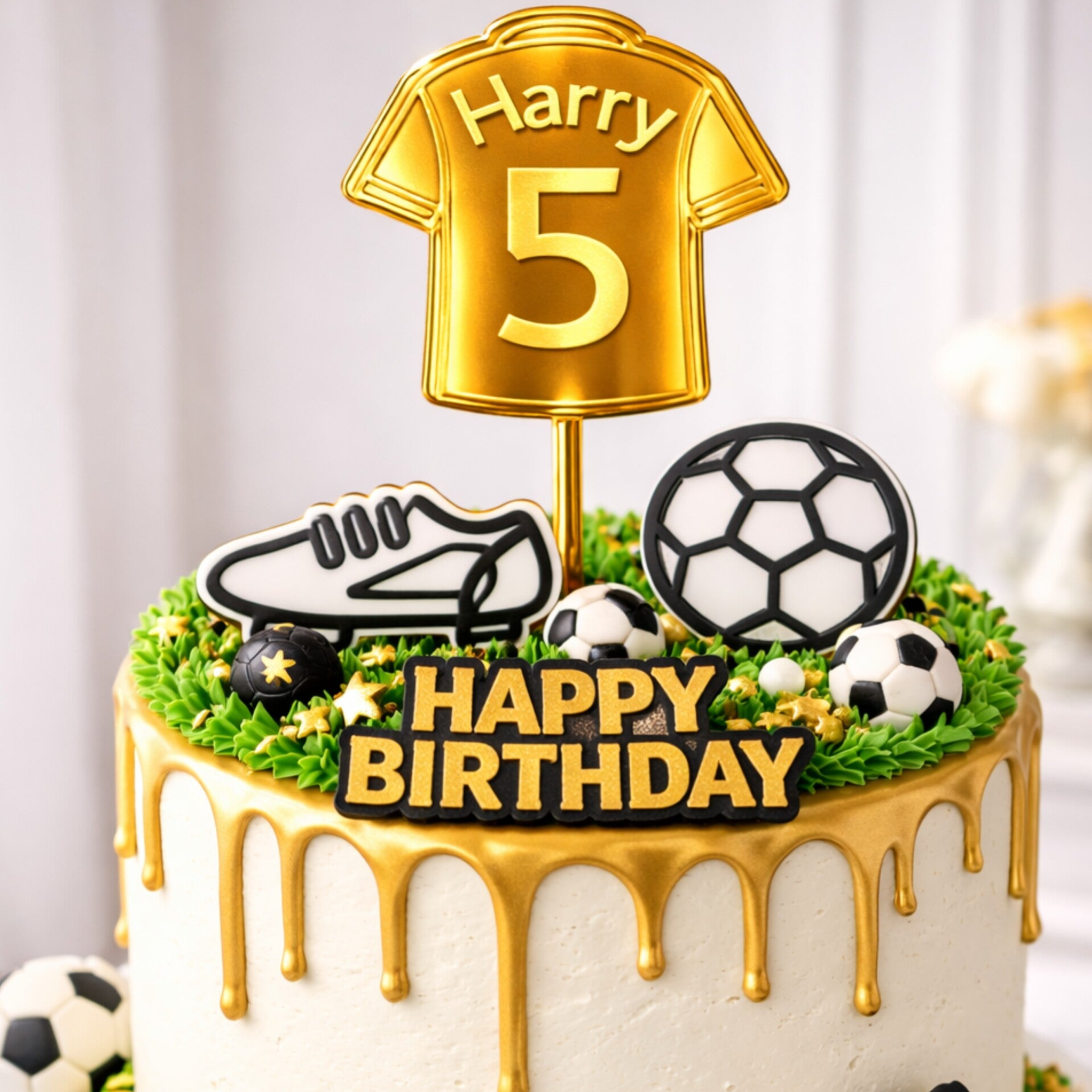 Whether you're celebrating a young athlete or a lifelong football fan, this eye-catching topper will elevate your cake into a centrepiece. Make your event unforgettable with a personalised touch that scores big on style.