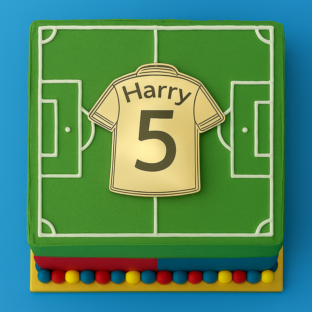 Make your cake unforgettable with this stylish and personalised football shirt charm — a must-have for any football lover’s special day.