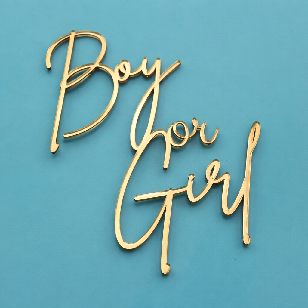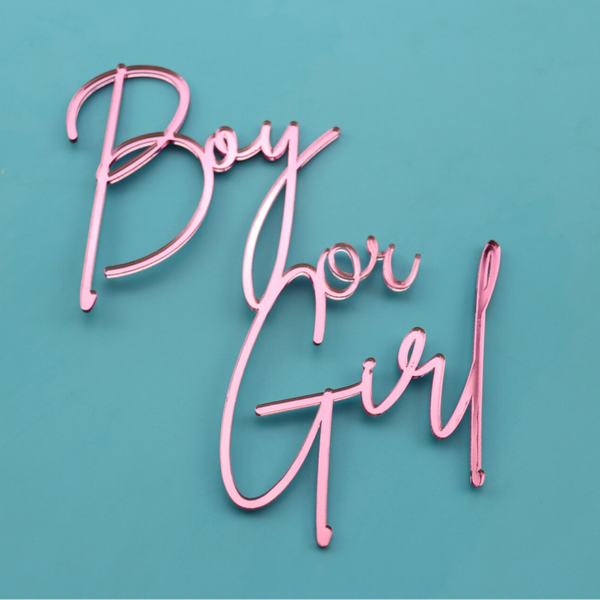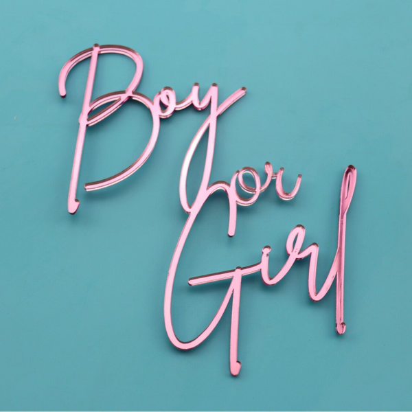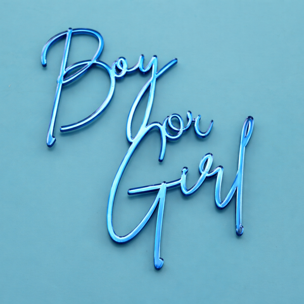 Our acrylic gender reveal cake charm is carefully precision cut and designed to transform any cake into a showstopping display. Whether you are celebrating a baby boy or baby girl, this cake charm adds a stylish and modern decoration to your cake.