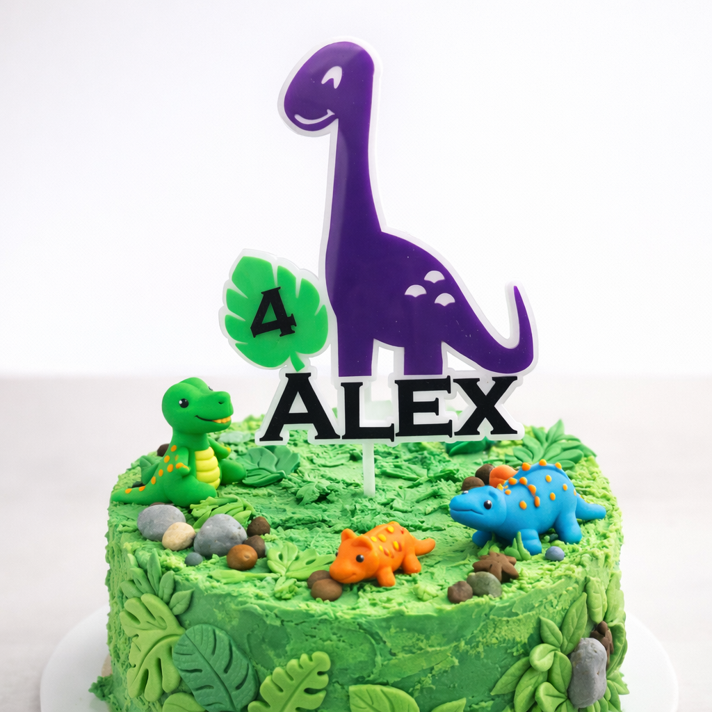This stylish custom dinosaur cake topper is designed to stand out beautifully on both homemade and professionally decorated cakes.