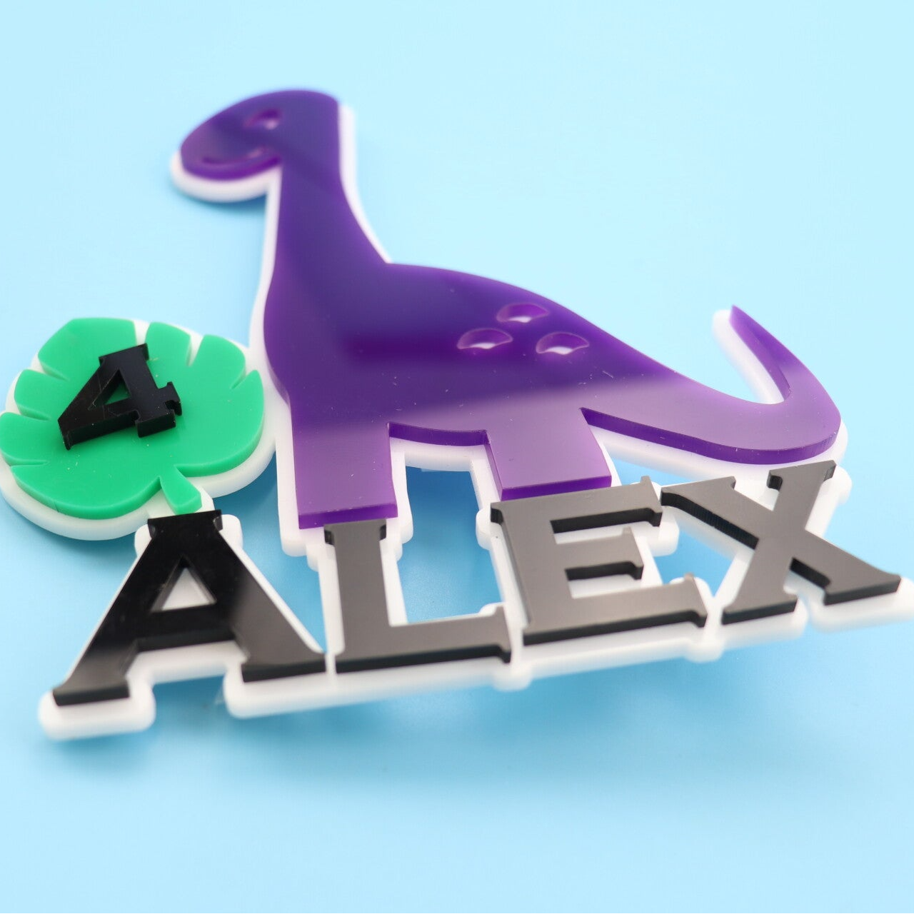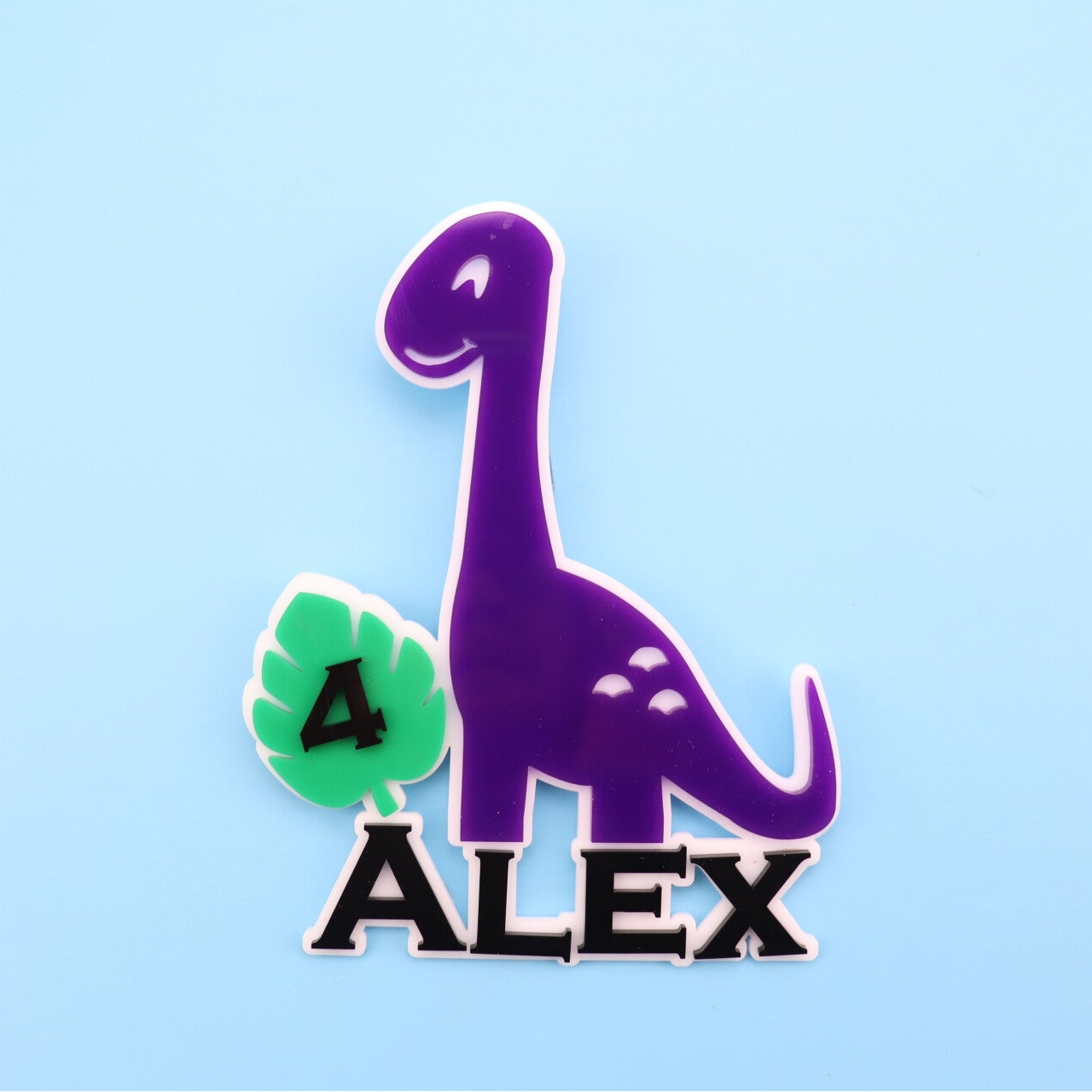 Our Personalised Dinosaur Cake Toppers are made from high-quality 3mm acrylic, ensuring strength, durability and a smooth professional finish.