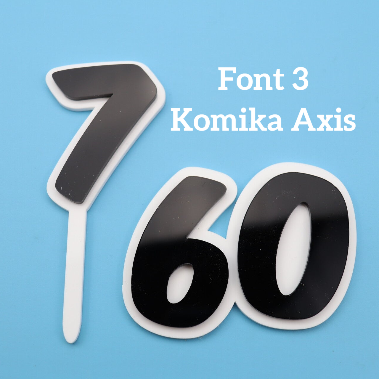 We offer a wide range of number fonts suitable for any style of cake, including: