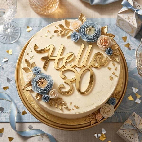 Celebrate a milestone birthday in style with this elegant Hello 30 acrylic cake charm, the perfect finishing touch for a beautiful 30th birthday cake. Featuring a stylish flowing script design, this topper instantly transforms any cake into a stunning centrepiece for a 30th birthday celebration.